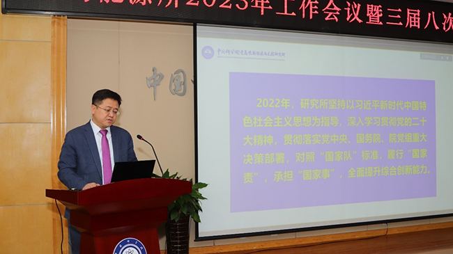 本次会议的主题是:深入学习贯彻党的二十大精神,深入落实院2023年度工作会议精神,凝心聚力、奋楫笃行,努力实现研究所跨越式发展。所长吕雪峰代表所班子作2023年度工作报告,系统总结2022年度工作进展,规划未来五年总体工作思路,并就2023年重点工作做了部署。党委书记彭辉作聚焦主责主业,狠抓工作落实,推动研究所党建工作高质量发展的报告。纪委书记李明、副所长吴绪永、徐峰分别就各自分管领域重点工作作专项报告。