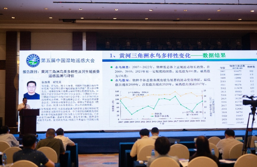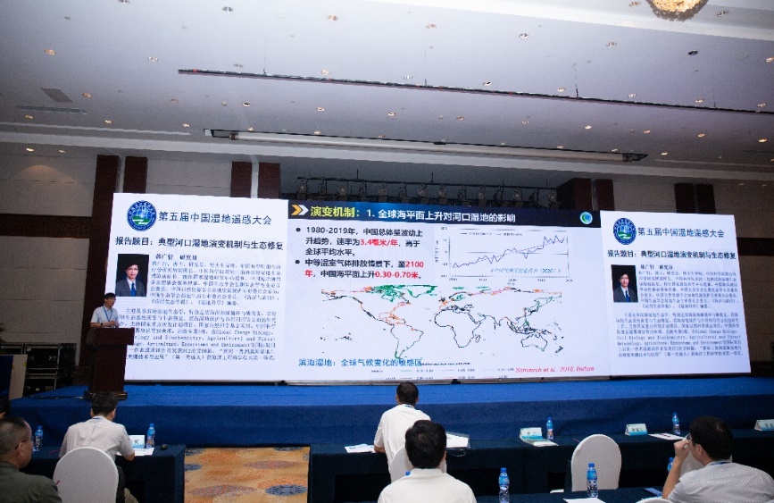 大会特邀报告环节中国科学院成都生物研究所副所长陈槐研究员、中国科学院烟台海岸带研究所副所长韩广轩研究员、中国科学院东北地理与农业生态研究所副所长王宗明研究员、中国科学院烟台海岸带研究所邢前国研究员、自然资源部第二海洋研究所张华国研究员、宁波大学孙伟伟教授以及中国科学院烟台海岸带研究所侯西勇研究员分别作了题为“泥炭地碳动态与全球变化”“典型河口湿地演变机制与生态修复”“中国湿地土壤有机碳储量时空特征”“我国近海大型海藻遥感及其蓝碳贡献评估”“太平洋岛屿国家海岸带与海岛生态环境遥感应用”“湿地植物多样性遥感监测研究进展与展望”以及“黄河三角洲鸟类多样性及其生境质量遥感监测与评估”的主旨报告。大会特邀报告环节由烟台海岸带所侯西勇研究员和鲁东大学资源与环境工程学院吴孟泉教授共同主持。