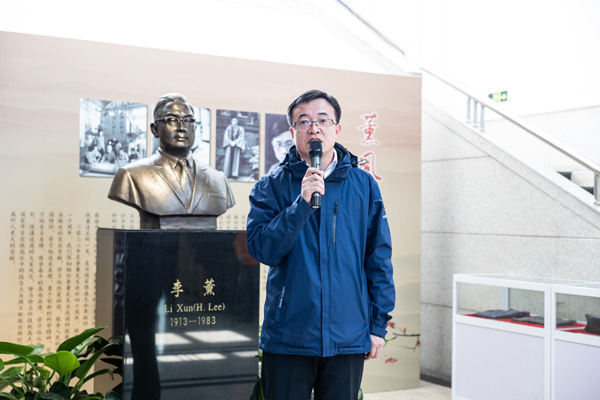 报告会结束后,在李薰楼一楼大厅,举行了李薰先生档案图片展启动仪式暨遗物捐赠仪式。仪式由金属所副所长黄粮主持。所党委副书记(主持工作)、副所长陈星秋和李薰先生的女儿李望平女士共同为档案图片展揭幕,沈阳市工会事务与职工服务中心党委书记、主任徐子华发表讲话,陈星秋代表金属所接受了李望平捐赠的10件李薰先生遗物。