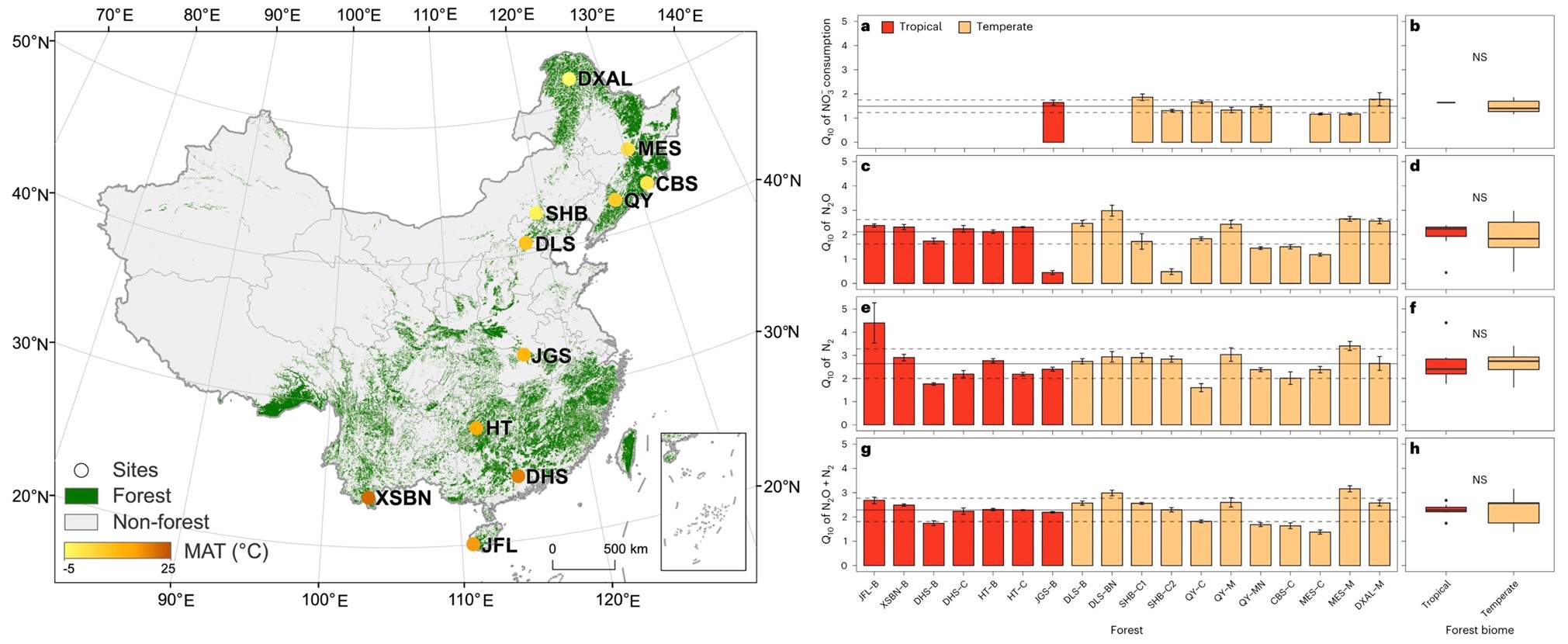 该成果于2023年7月发表在《Nature Climate Change》期刊,作为首个利用稳定同位素技术手段系统量化森林生态系统气态氮损失温度敏感性的研究,为过程模型的建立和改进提供了重要的数据参数,对于深入理解变暖背景下陆地生态系统复杂的碳氮耦合过程及其对变暖的反馈具有极大的推动作用。